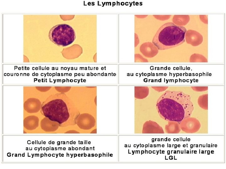 IV-ASPECTS MORPHOLOGIQUES • Population lymphocytaire : 8 à 12 % de lymphocytes B, 70 à 80 % de lymphocytes T et 5 à 15 % de cellules NK.