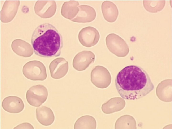 IV-ASPECTS MORPHOLOGIQUES Cellule avec un noyau à chromatine dense Un rapport N/C élevé. Parfois on observe un discret nucléole, comme sur cette image. Grand lymphocyte