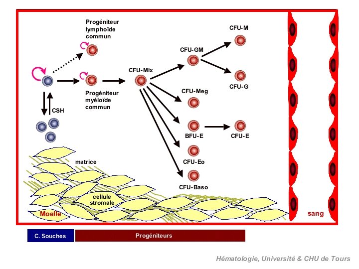 II- ORIGINE ET CIRCULATION DES CELLULES LYMPHOÏDES 1. Origine et migration initiale des précurseurs § La lymphopoïèse commence au niveau du foie fœtale à partir de la 6 ème semaine. § La MO se substitue à partir du 4 ème mois. ØDevient prépondérante à partir du 6ème mois ØExclusive à la naissance