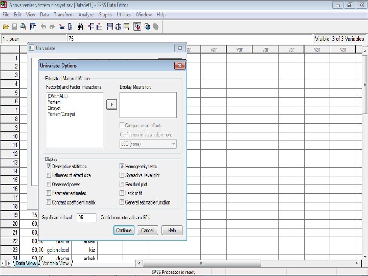Kaynaklar Büyüköztürk, Ş. , 2012. Sosyal Bilimler İçin Veri Analizi Kitabı. Eymen, U. E. , 2007. SPSS 15. 00 Veri Analizi Yöntemleri. Green ve Salkind, 2008, s. 194. Using SPSS for Windows And Macintosh: Analyzing and understanding data. New York: Printice Hall.