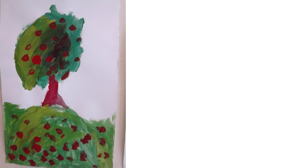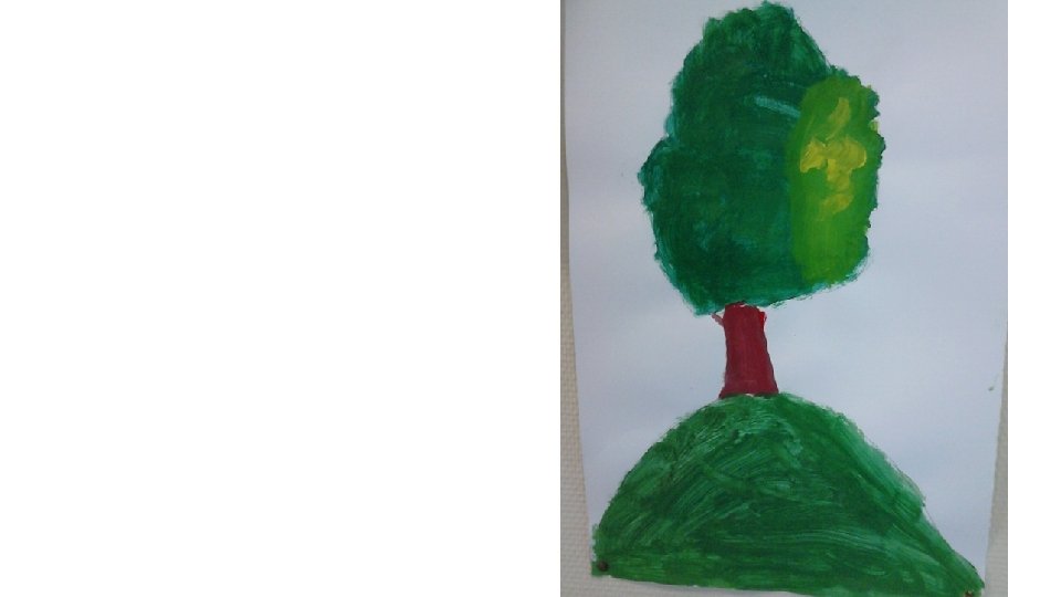 Pour dessiner un arbre Avec le crayon à papier, dessiner la forme de la colline, puis dessiner l’arbre : le tronc, puis le feuillage en gribouillis. Avec la peinture, faire du vert en mélangeant du jaune et du bleu. Avec le vert, peindre le feuillage et la colline. Avec la peinture marron, peindre le tronc. .