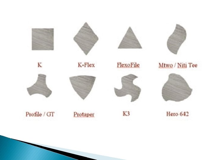 ANGULO HELICOIDAL: Es definido como el ángulo que se forma entre el eje longitudinal del instrumento y las hojas cortantes del mismo. ANGULO DE CORTE: Si la lima es cortada transversalmente podremos observar que las paredes del mismo forman ángulos entre sí.