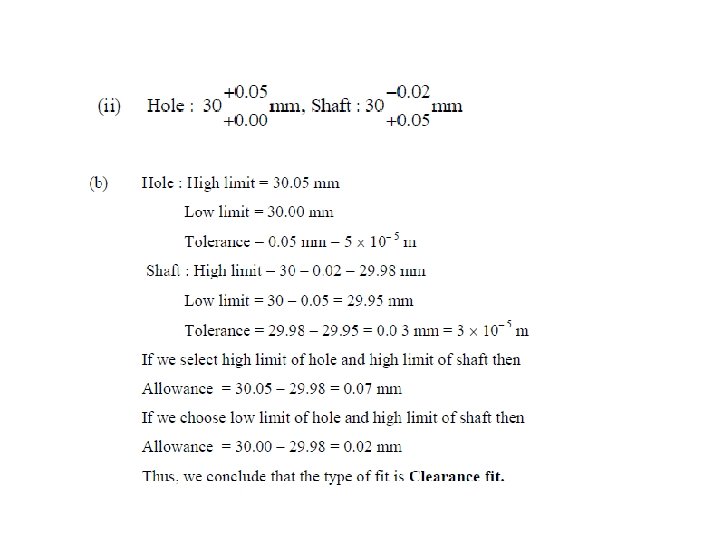 Allowance Ø Allowance is the prescribed difference between the hole dimension and shaft dimension for any type of fit. Ø It is the intentional difference between the lower limit of the hole and higher limit of the shaft.