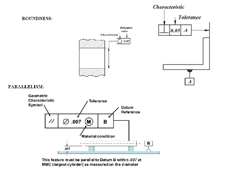 Designation of fits example: Ø 50 H 7 g 7 : is a fit indicated by its basic size 50 mm, followed by symbols representing the limits of hole (H 7 i. e hole having basic size 50 mm and tolerance grade IT 7) and shaft (g 7 i. e shaft having basic size 50 mm and tolerance grade IT 7) the type of fit system is hole basis and obtained type of fit is clearance fit. Ø 35 H 8 j 7 :