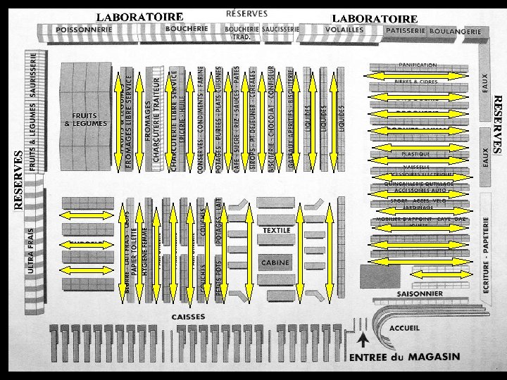 Le magasin en libre service comprend 3 types d’allées : les allées principales, les allées secondaires, les allées périphériques.
