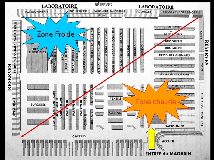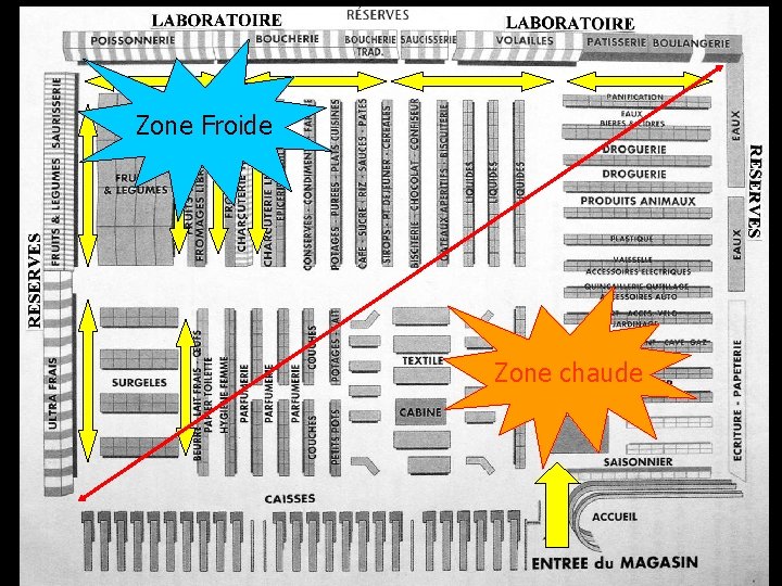 Quels sont les produits que le client vient acheter (généralement) en priorité ? Zone froide Produits alimentaires Zone chaude Produits non alimentaires