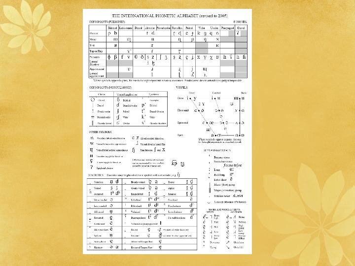Why should we talk about Phonetics? • For fieldwork • Teach a second language • Learn a new language • Trained ear • Communication disorders • Pronunciation correction for language learners / actors • Forensic analysis