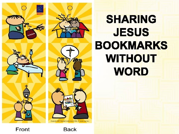 9. ‘Ask Me Now’ Pins ASK ME NOW • Child puts on pin and knock on neighbor’s door. • When someone opens the door, child points to pin and neighbor will ask her what she wants. • Child starts sharing Jesus and gives neighbor a book to read.