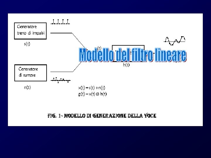 - Il segnale finale è dato dalla CONVOLUZIONE del segnale entrante x(t) con il filtro vocale h(t) g(t)=x(t) h(t) - Lo spettro del segnale finale è dato dal PRODOTTO degli spettri dei segnali x(t) e h(t)