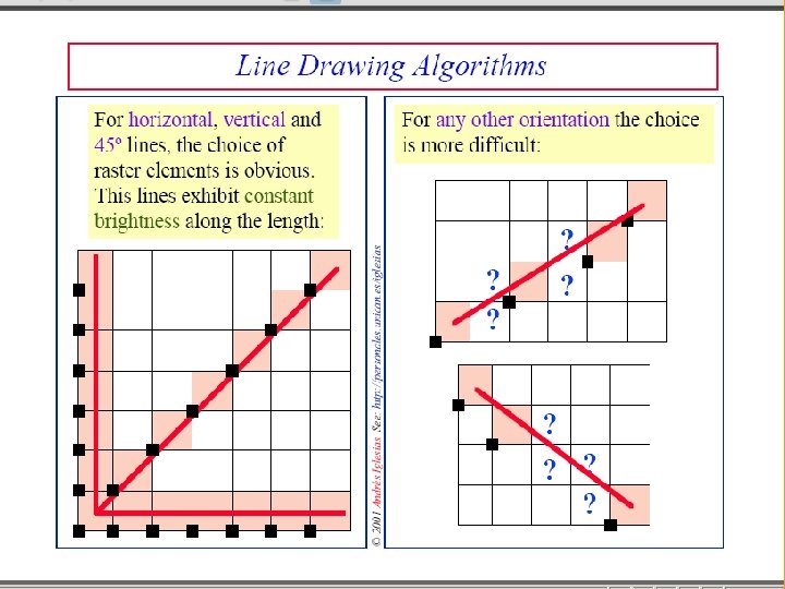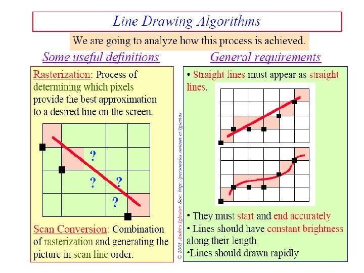 Line Drawing Algorithms RasterizationProcess of determining which pixels