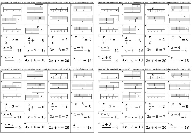 Match each Bar Model with an Equation & complete each card.