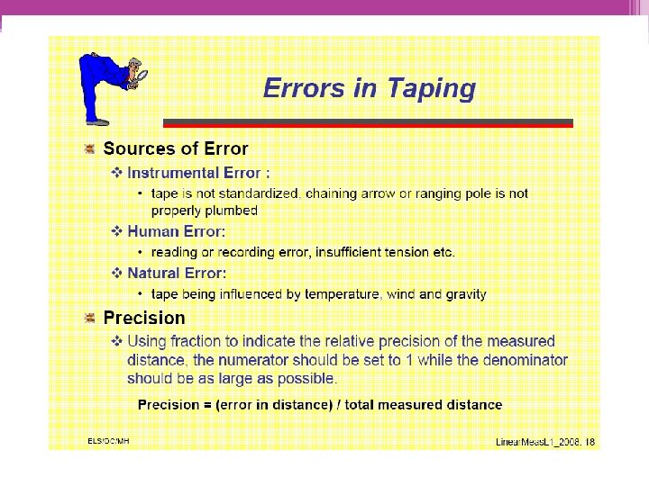 INCORRECT LENGTH OF TAPE • Incorrect length of tape can be one of the most important errors. • The tape is not of ‘true’ length. • Error caused by incorrect tape length occurs each time the tape is used.
