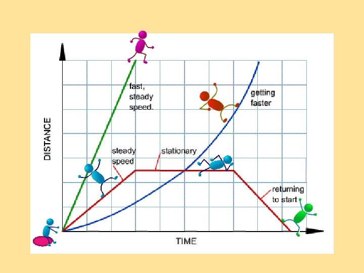 You are 20 m away from me when you start. You stand still for 1 s and then you start to walk away for 2 s at the same speed. You stop for 1. 5 s. Then walk towards me for 1. 5 s @ the same speed. We could use the slope to find that speed.