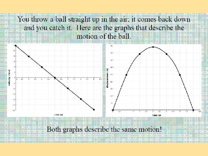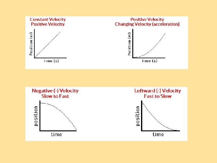 Data Set 2 Data Set 1 t(s) Δ x (m) 0 -15 0 6 0. 5 -10 1 8 1. 0 -5 2 10 1. 5 0 3 12 2. 0 5 4 14 2. 5 10 5 16 3. 0 15 6 18 Data Set 3 Data Set 4 t(s) Δ x (m) 0 0 0 8 1 1 1 6 2 4 3 9 3 2 4 16 4 0 5 25 5 -2 6 36 6 -4 This is Excel distance (or position) – time data. You could graph it easily from these data tables. Which table shows acceleration? You can tell without graphing. Look at the distances.