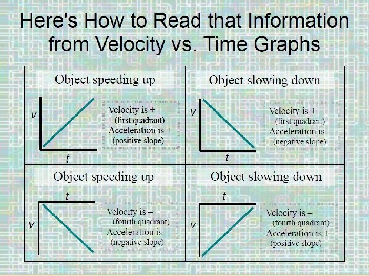 Positive Velocity and Negative Acceleration • If you move in the positive direction (right) you have a positive velocity. • If you are slowing down, then this is negative acceleration and is shown as moving leftward. http: //www. physicsclassroom. com/mmedia/kinema/pvna. cfm