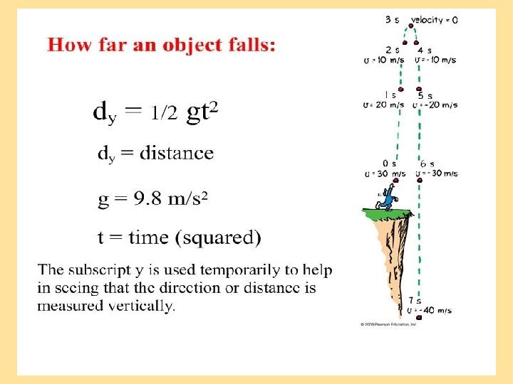 Known xf = 25 m xo = 0 m Vo = 0 m/s t = 2. 2588 s Unknown g or a Xf = Xo + Vot + 1/2 at 2 2 25 m = ½ a (2. 2588 s) 25 m (2/1) = ½ (2/1)( 5. 1020 s 2 ) 50/ 5. 1020 = 9. 8 m/s 2