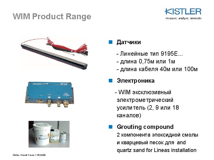 Содержание n Обзор продукции: WIM-системы, Layout, Output n WIM номенклатура продукции, обзор датчиков Sensor n Применение n Примеры Examples from around the World n Quartz Technology – Unique Features n Facts & Figures Kistler / David Cornu 11/5/2020
