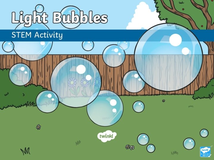 What to Do 1 Mix 2 or 3 drops of washing-up liquid in 200 ml water. (You may wish to add more or less to make the best bubble mixture!) 2 Tape the plastic lid onto the end of the torch. 3 Put a spoonful of the bubble liquid on the lid. What do you notice? 4 With a straw dipped into the bubble liquid on the lid, try to blow one big bubble that covers the whole lid. 5 Hold the torch so that the bubble dome is just above your eyebrows.