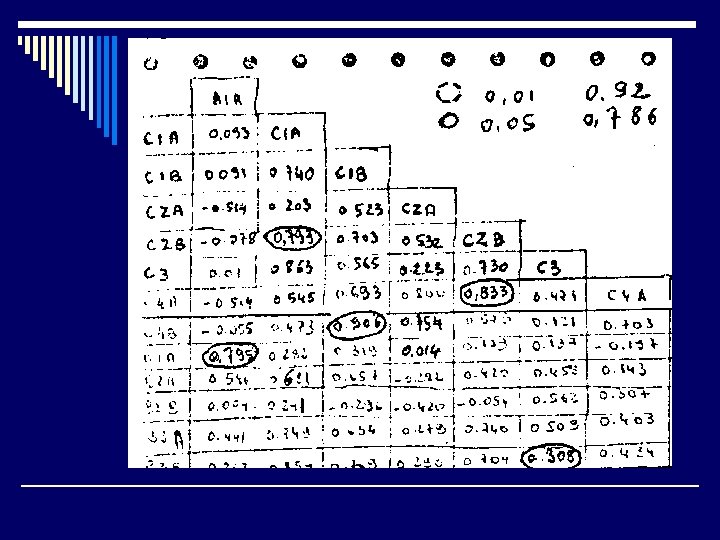 Une partie de la matrice des dépendances statistiques entre les résultats des leçons d’un curriculum pour le C. P.