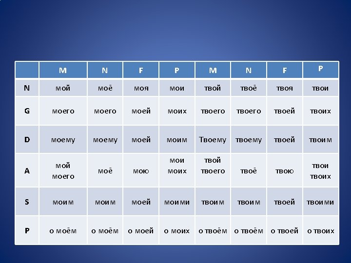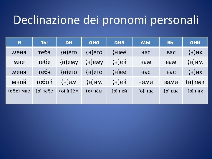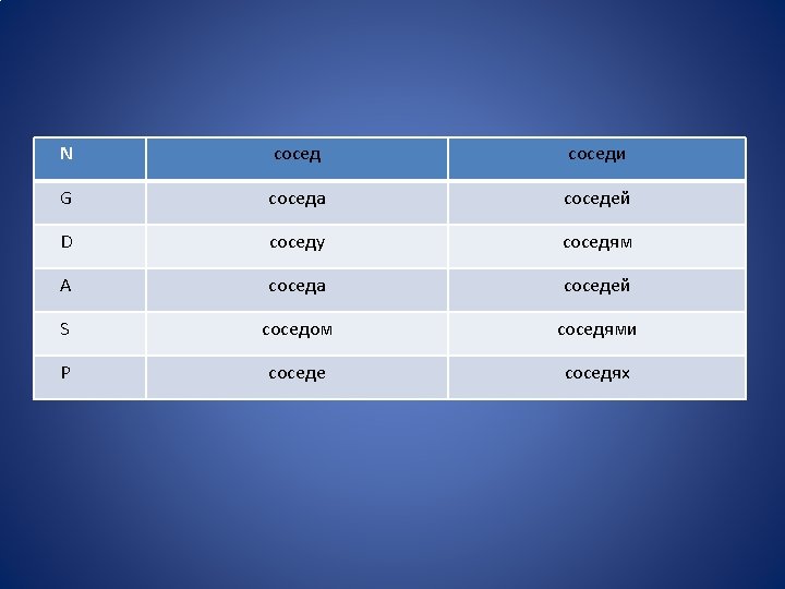 • Alcuni sostantivi neutri prendono la desinenza -и • Яблоко Яблок -и melo • Плечо Плеч -и spalla • Ухо Уш -и orecchio • Il sostantivo сосед segue la declinazione debole • Сосед -и vicino