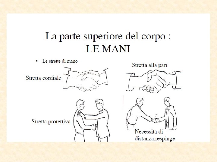 Stretta di mano dominante Torcere la mano dell’altro dorso verso l’alto Porre la mano su spalla o braccio