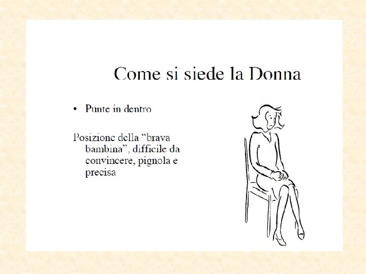 Cambiare postura Se ci si sente osservati si cambia postura Prima cosa che si nota Prima cosa che cambia