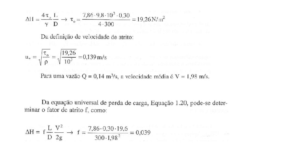 (Conduto Circular) : Tensão média de cisalhamento ( tensão tangencial média ou Tensão trativa média). Tensão entre o fluido e o perímetro da seção em contato com o fluido. : Peso específico : Raio Hidráulico.