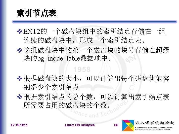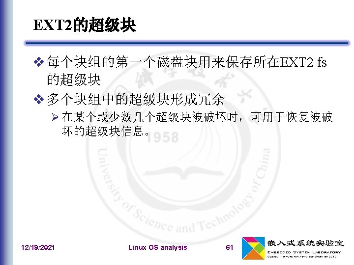 在内存中记录ext 2超级块的数据结构 12/19/2021 Linux OS analysis … 64