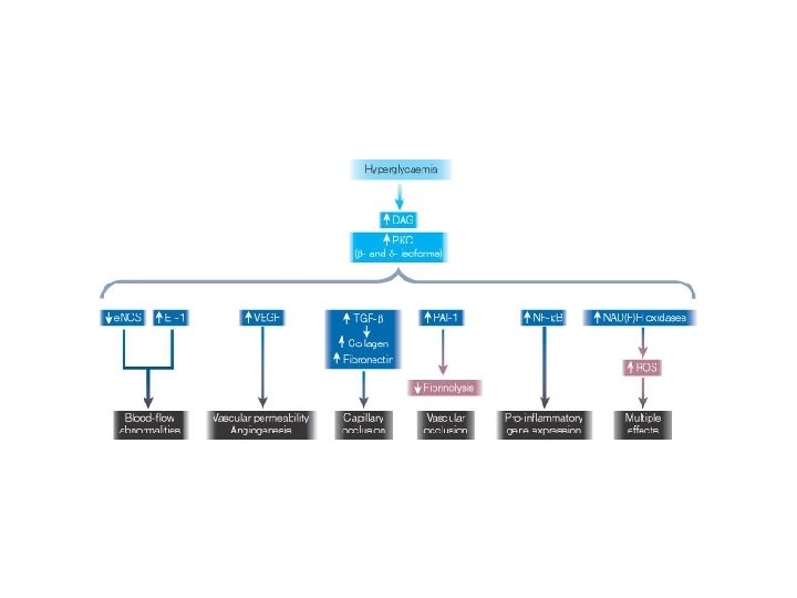 GLUCOSIO Tiamina (B 1) SORBITOLO GLUCOSIO 6 -P FRUTTOSIO 6 -P UDP-N-ACETILGLUCOSAMINA + Pentosio-5 P Eritrosio-5 P transchetolasi FRUTTOSIO 1, 6 -DIP Via dei pentoso P DIACILGLICEROLO GLICERALDEIDE 3 -P METILGLIOSSALE Gliceraldeide 3 -P deidrogenasi (GAPDH) 1, 3 DIP-GLICERATO O 2 - PIRUVATO MITOCONDRIO