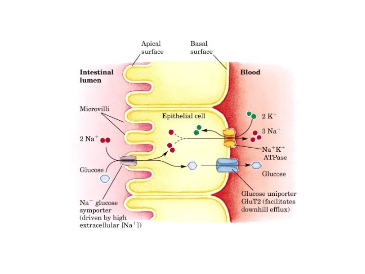 Absorbing products of digestion • Glucose and amino acids are absorbed by facilitated diffusion and co-transport with Na+ ions