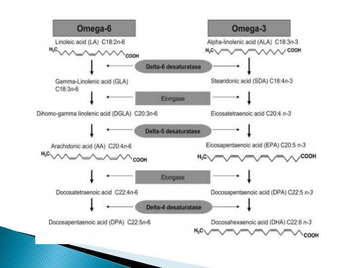 Gli acidi grassi polinsaturi n-3 ed n-6 sono essenziali perché il nostro organismo non è in grado di sintetizzarli non disponendo di desaturasi capaci di agire sui primi 7 legami dal CH 3. Gli n-3 si trovano ampiamente rappresentati negli organismi marini, gli n-6, oltre che nel mondo animale, sono diffusi in tutto il regno vegetale. I doppi legami degli acidi grassi polinsaturi possono presentarsi isolati o coniugati: in natura in genere sono isolati. La coniugazione dei doppi legami è una conseguenza di trattamenti tecnologici come la decolorazione e una delle poche fonti naturali è rappresentata dal grasso del latte in cui è presente un acido linoleico a doppi legami coniugati (CLA).