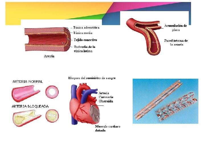 ATEROSCLEROSIS Y ARTERIOSCLOROSIS ATEROSCLEROSIS: Es una enfermedad en la que se deposita placa dentro de las arterias. La placa esta compuesta de grasas, colesterol, calcio y otras sustancias que se encuentran en la sangre. ARTERIOSCLOROSIS o ARTERIOESCLEROSIS: Es el endurecimiento de las arterias. Para que sean unas vías eficaces, las arterias tienen que ser elásticas y saludables. La presión y otras causas pueden crear engrosamiento en las paredes de las arterias, robándoles su elasticidad y flexibilidad.