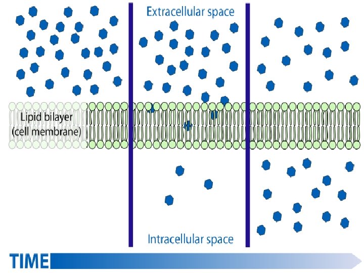 Diffusion • Diffusion will always take place where a concentration gradient exists across a membrane. • It continues until all the particles are distributed evenly. • This results in a state described as Equilibrium. • Substances such as water, carbon dioxide and other small uncharged particles can pass through a membrane by simple diffusion