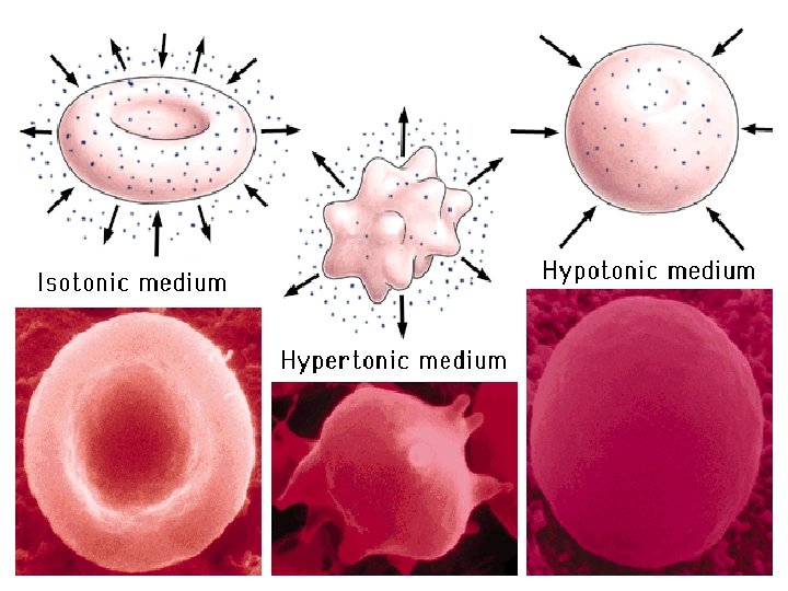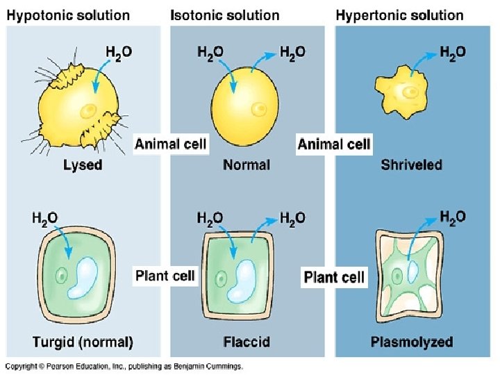 Hypotonic / Isotonic / Hypertonic • Plant and animal cells (& others) will respond to being in hypotonic, isotonic or hypertonic environments. • Some small organisms (unicellular protazoa) have specialised organelles to help balance their water content if they live in hypo/hyper tonic environments.
