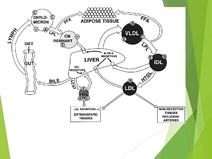 VLDL Lipoprotein Lipase FA IDL Intermediate density lipoproteins Cholesterol esters LC AT Excess PL and cholesterol HDL cholesterol LDL