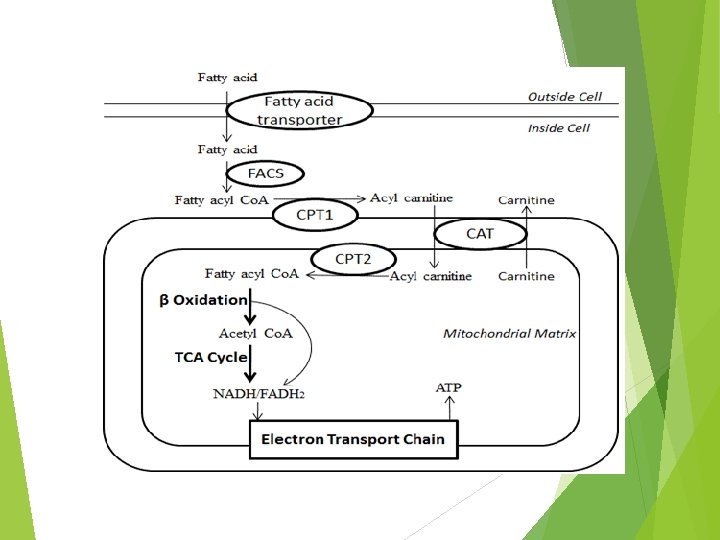 Carnitine Shuttle Pathway FA Acyl Co. A synthetase (FACS) Carnitine translocase (CAT) Carnitine palmitoyltransferase (CPT) Fatty acyl-Co. A synthase (FACS)