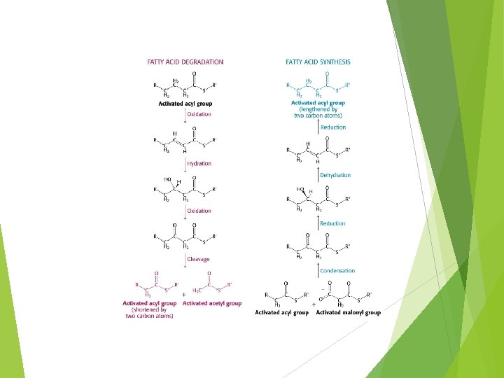 FA synthesis 1. 2. Priming reaction a. acetyl-transacylase b. malonyl-transacylase Condensation a. 3. Reduction 1 a. 4. 3 -ketoacyl synthase 3 -ketoacyl reductase Dehydration
