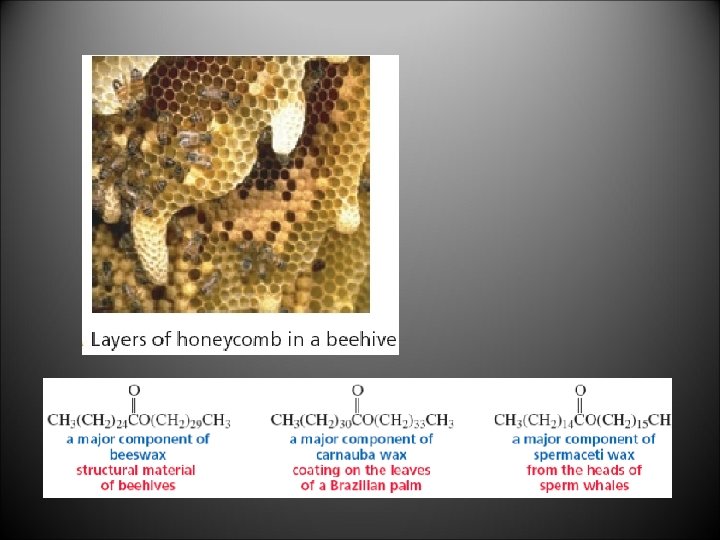 Waxes А wax is а monoester formed from the reaction of а long-chain monohydroxy alcohol with а fatty acid molecule. The block diagram: Example Biological role: They serve as protective coatings on leaves, stems, and fruit of plants and the skin and fur of animals.