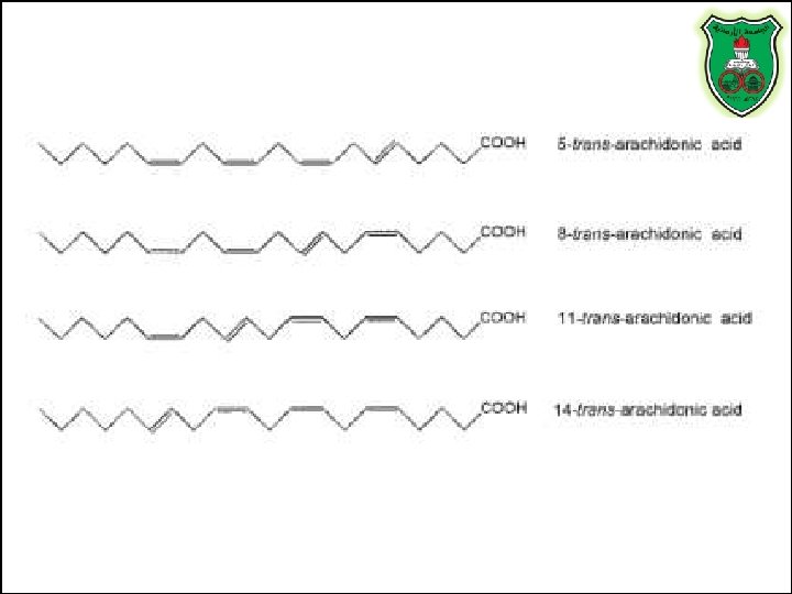 Omega -6 PUFAs • Arachidonic acid – stimulate platelet and leukocyte activation, – signaling of pain, – induction of bronchoconstriction, – regulation of gastric secretion