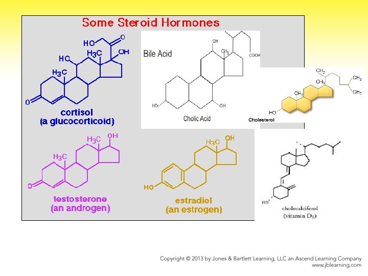 Sterols • Cholesterol functions – In cell membranes – Precursor: • Vitamin D • Sterol hormones • Bile salts • Cholesterol synthesis in liver – Found only in animal foods
