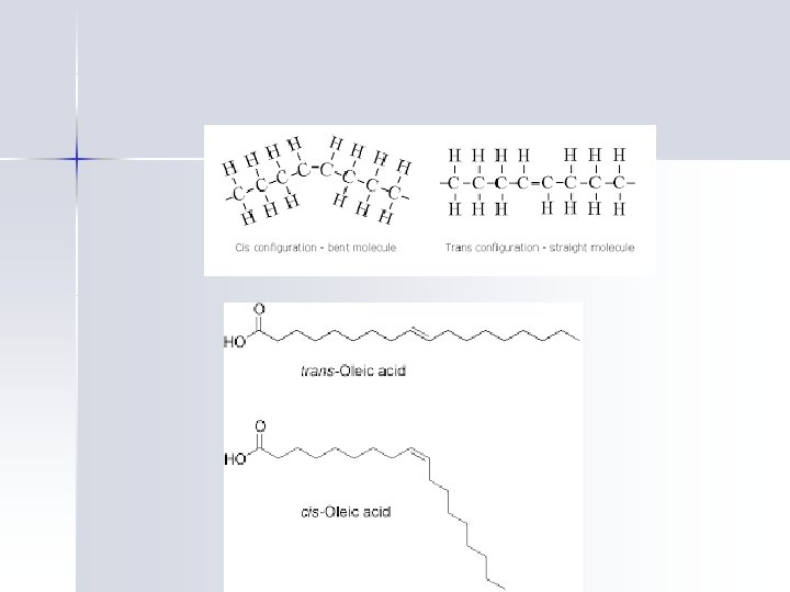 HOW DO YOU LIKE YOUR LIPIDS? n SATURATED – The fatty acids are completely full of hydrogen atoms n UNSATURATED – There are one or more double bonds, making the fatty acids not full of hydrogens