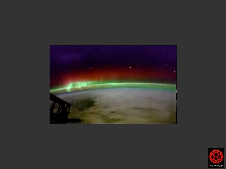 Emission (nm) type OI Intense red band in aurora (photo above) 557. 7 OI Intense green band in aurora (photo above) 777. 4 OI Airglow emission OI Airglow and seen in twilight emission (weak) OII Twilight emission (weak) 630. 0 844. 6+ 436. 8 732. 0 + 372. 8 500. 7 + OIII Astronomic