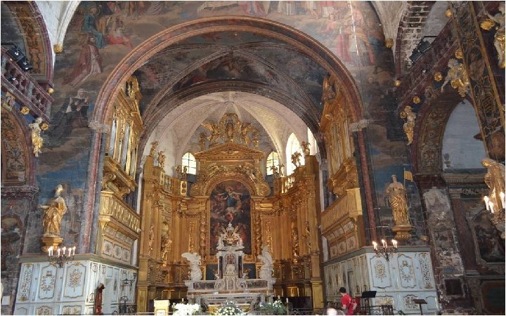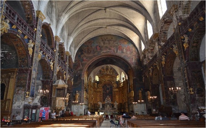 u La collégiale Notre Dame des Anges, construite au XIIe siècle. u Un monument extraordinaire dont la façade sévère, ne permet pas d’imaginer la richesse du décor intérieur : u Grandes toiles des meilleurs peintres, statues , décors muraux, boiseries sculptées , un retable de quinze mètres de haut habillant tout le cœur et deux cent vingt-deux figures d’Anges pour accompagner Marie au ciel. u C’est un témoin majeur du baroque dans le midi de la France.
