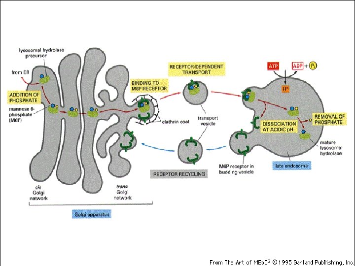 Ph acid • Mecanism activ – pompa de protoni din membrana lisosomala. • Mecanism pasiv – echilibrul Donnan, care înseamnă distribuţia inegală a protonilor prin legarea lor de proteine – La interiorul lisosomilor există foarte multe enzimele lisosomale împachetate compact cu sarcini negative, care leagă protoni. – concentratie mai mare a H+ faţă de citoplasmă.