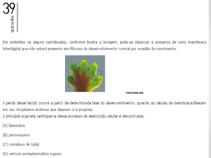 (UERJ – 2005) Células do tipo X absorvem a substância S apenas por transporte ativo. Essa absorção, em células do tipo Y, é feita por transporte passivo mediado por um transportador específico. Num experimento, foram medidas as velocidades iniciais de transporte de S através das membranas plasmáticas de X e de Y, em função de concentrações crescentes dessa substância no meio extracelular. O experimento foi repetido, então, em presença de um inibidor da geração de ATP nas células. Observe a tabela, que resume as condições do experimento, e o gráfico a seguir. As curvas que representam as medidas obtidas, respectivamente, nas condições experimentais I, III e IV, são: a) 1 - 2 - 1 - 3. b) 2 - 3 - 2. c) 2 - 3 - 2 - 3. d)3 - 1 - 1.