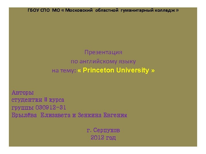 МОГК «Московский областной гуманитарный колледж» Presentation «Yale University» This work is prepared вy students group 030912 -31 Breining Tatyana Krupnova Svetlana