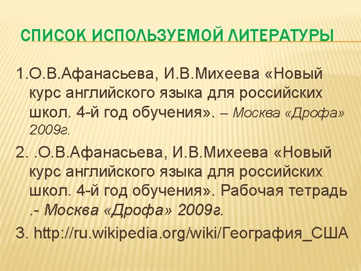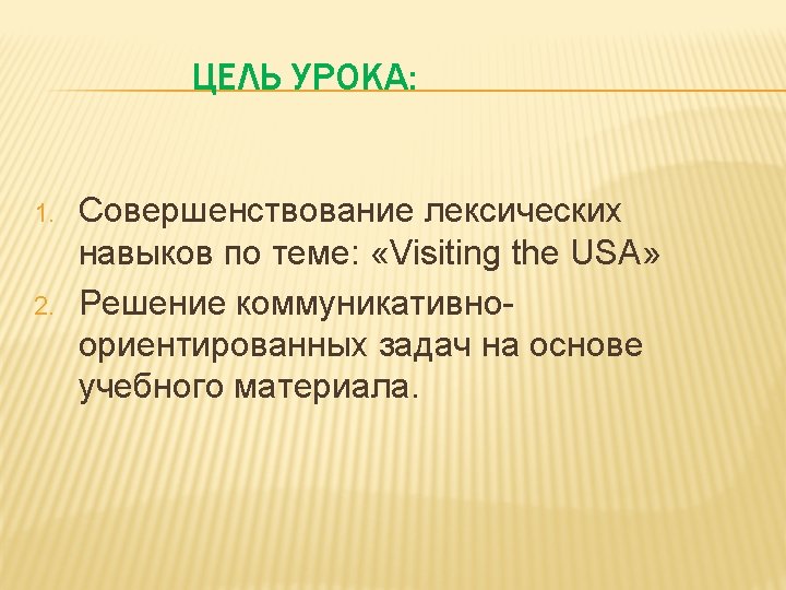 HOW WELL DO YOU KNOW GEOGRAPHY OF THE USA? GIVE IT A NAME 1. 2. 3. 4. 5. 6. 7. Five big lakes in the north-east of the USA The biggest river of the USA The chain of mountains in the east of the USA The chain of mountains in the west of the USA The biggest state of the USA The capital of the USA The plains which are situated in the central part of the USA