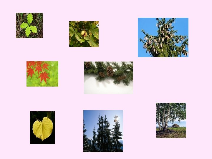 Které obrázky znázorňují jehličnaté stromy? Klikni na ně.