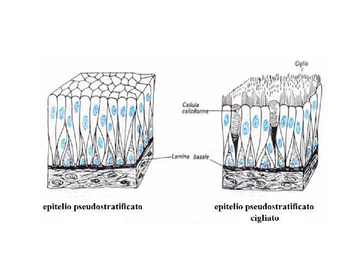 cilia Nuclei disordinati arteriola Lamina basale vena Epitelio cilindrico pseudostratificato ciliato Trachea