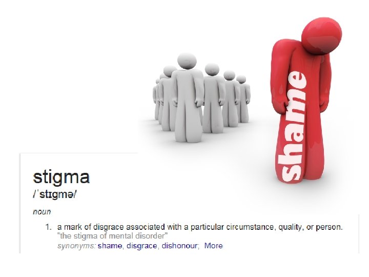 Surveys show that stigma is real for people with mental health problems … • 70% had negative reactions regarding their mental health problems from friends • It leads to depression – 26% of people who experienced MH stigma say it makes them want to give up on life • It actively stops people from seeking help, socialising and applying for jobs